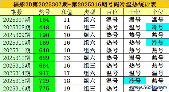 上期转头:福彩3D第2025316期开奖奖号为:775,奖号类型为:组三,奖号冷温热态为:热号+温号+温号。